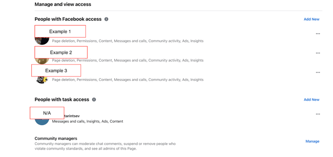 In this example, the user who connected the widget with their account, is not in the list of people with Facebook access: