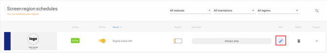 Appare l’elenco delle tue regioni dello schermo. Fai clic sul pulsante di modifica accanto alla regione dello schermo che desideri regolare.